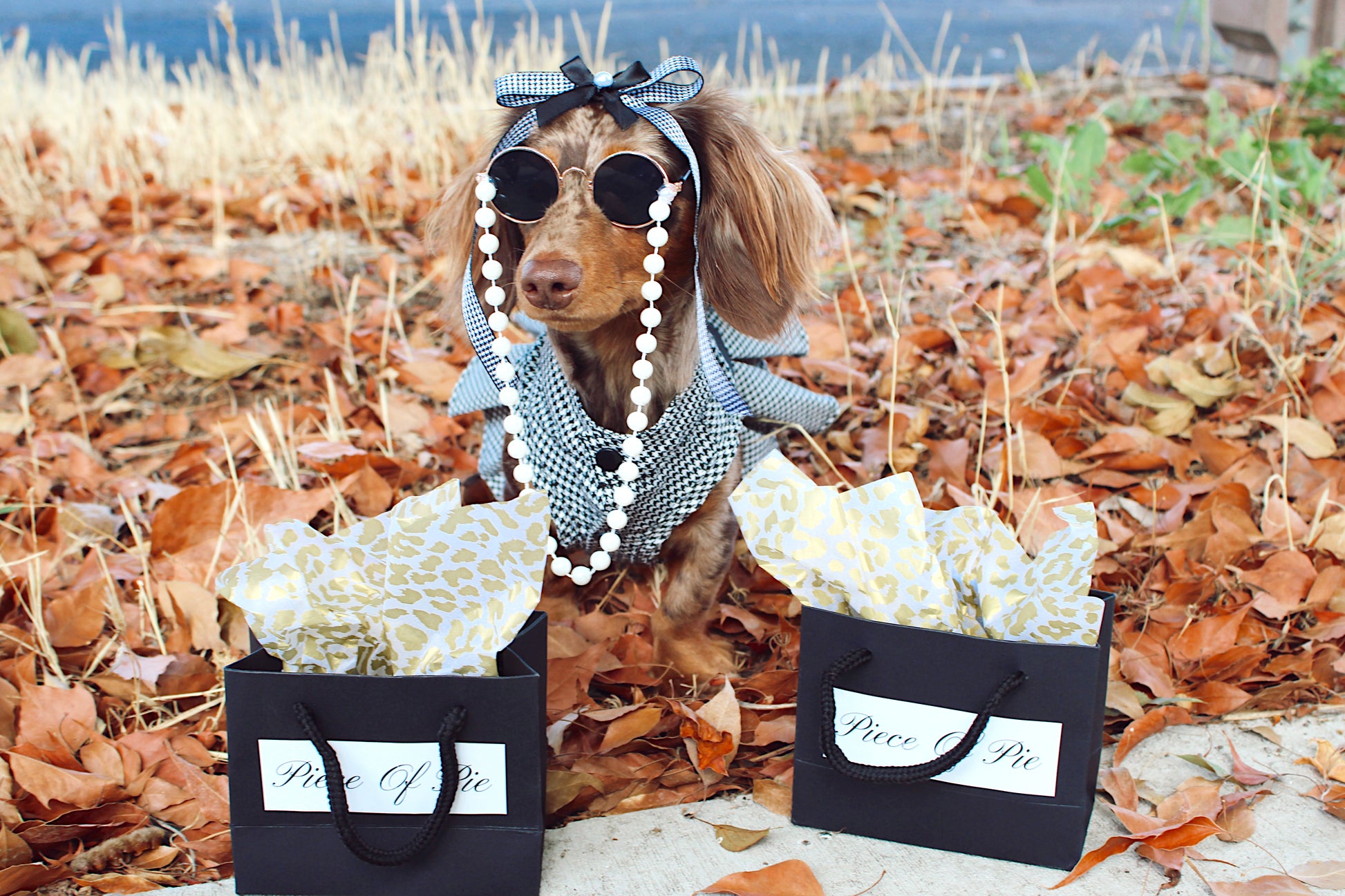 Long bow with houndstooth print